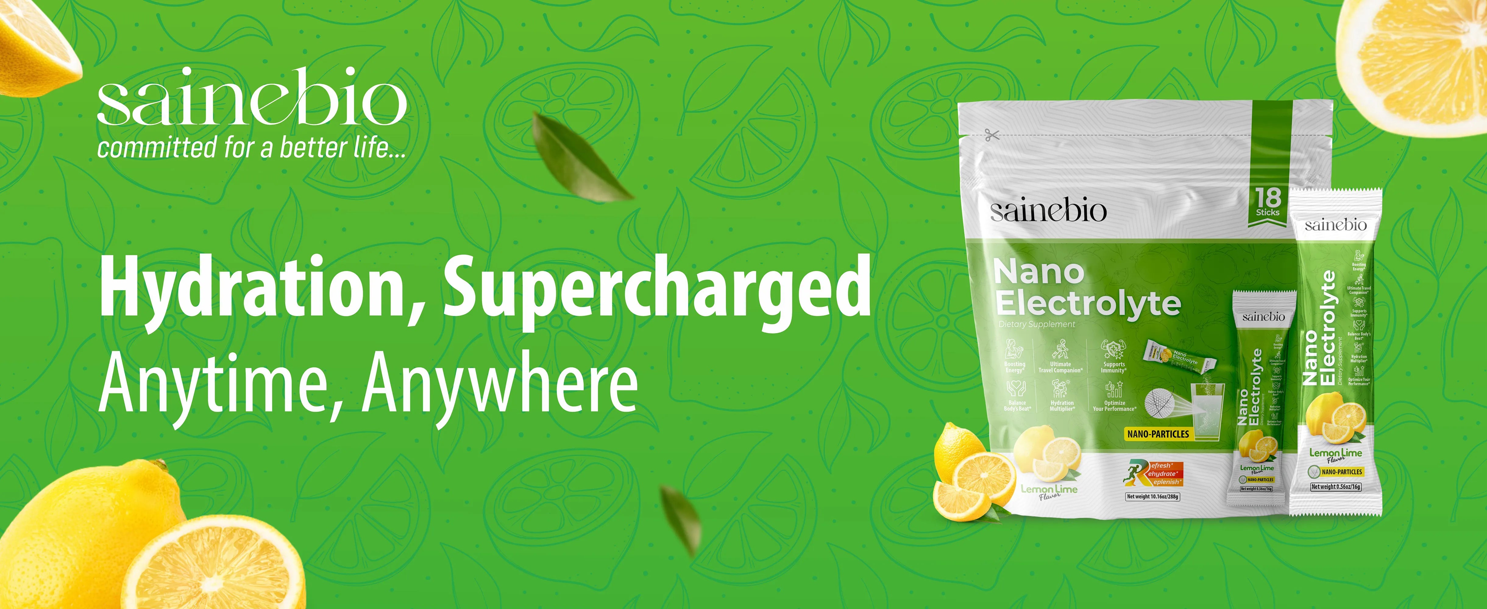 Nano Electrolyte Powder – 18 Sachets | Lemon Lime Flavor |