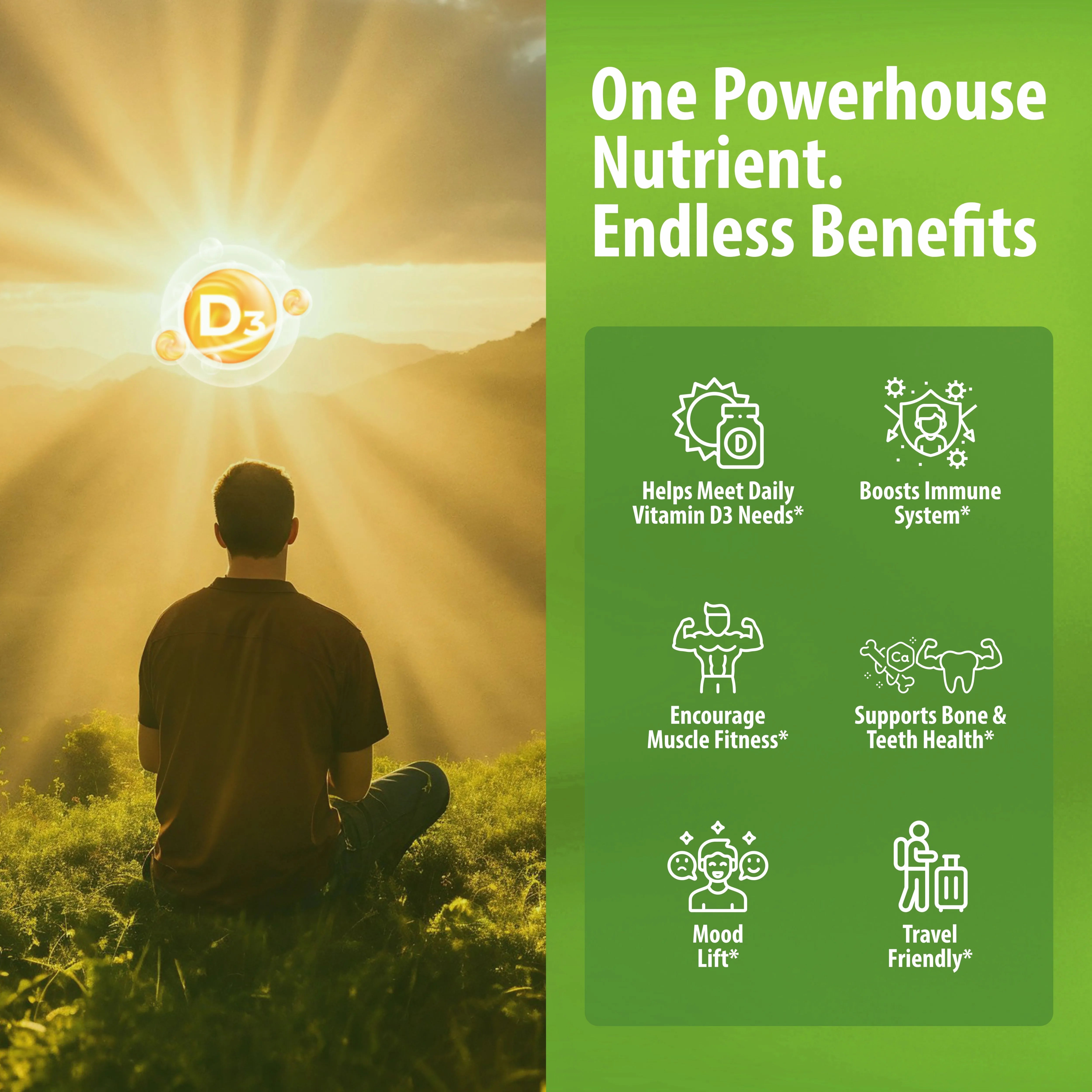 It helps meet your daily Vitamin D3 needs, supporting immunity, muscle fitness, bone, and teeth health.