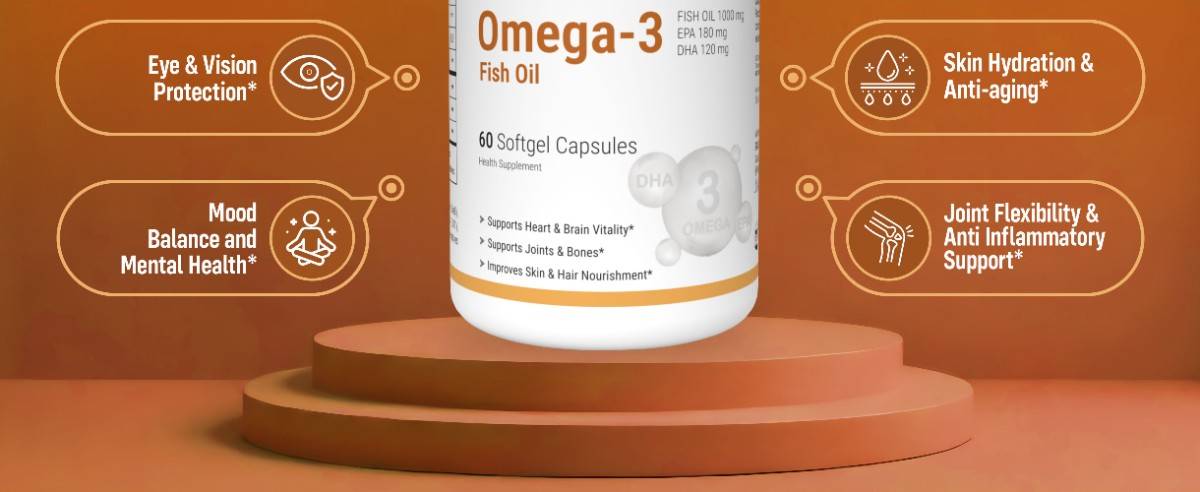 1000mg Premium Fish Oil Per Softgel: Delivers 300mg of Omega-3 fatty acids including 180mg EPA and 120mg DHA to support heart, brain, joint, and eye health.